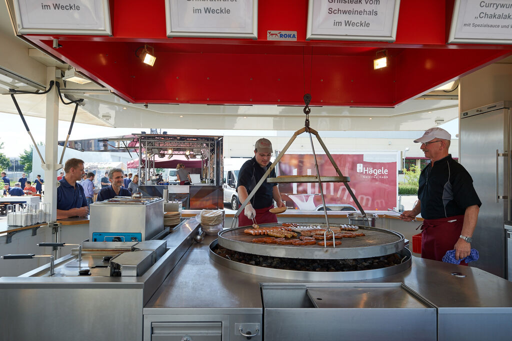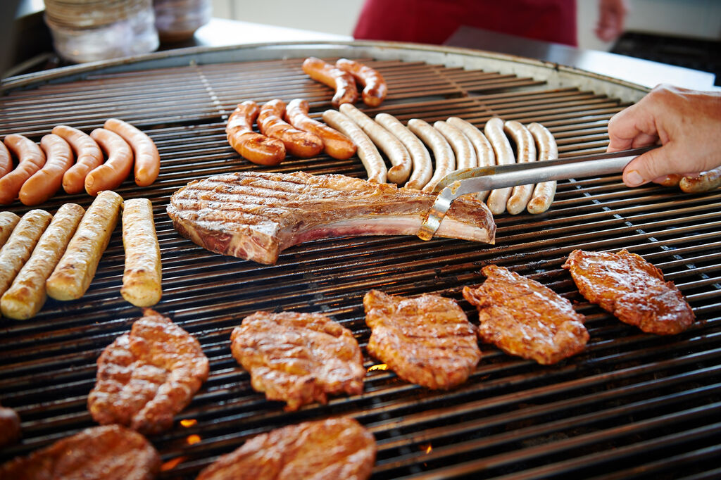 Steaks, Bratwurst, Currywurst, Hacksteaks, Pommes Frites, Wedged Potatoes, Fleischspieße, gegrillter Fisch, Maiskolben mit Butter ...und auf Wunsch ganz individuelle Grillereien.